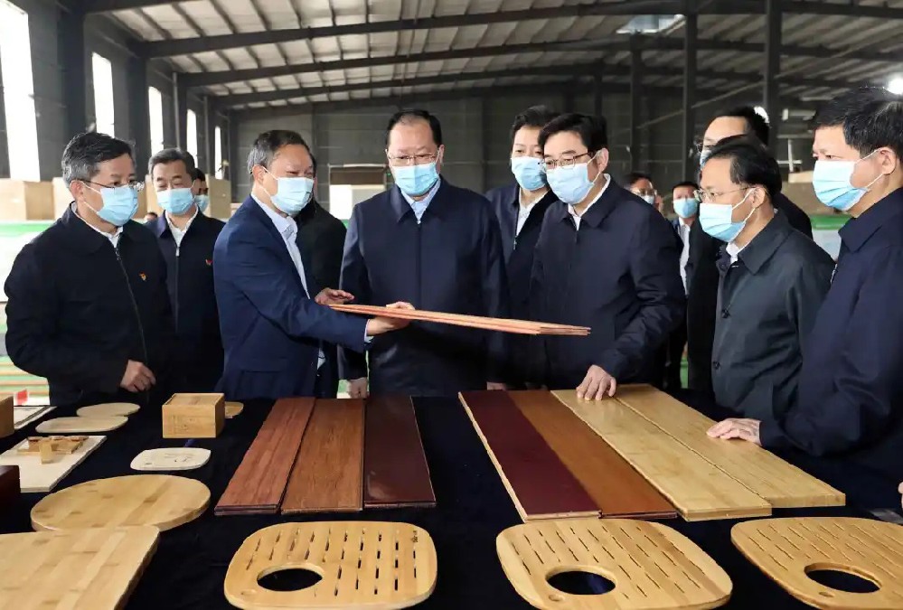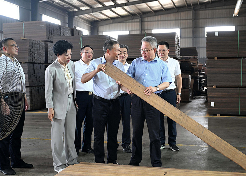 湖南省林業(yè)局黨組書記、局長(zhǎng)吳劍波一行蒞臨桃花江竹材考察指導(dǎo)