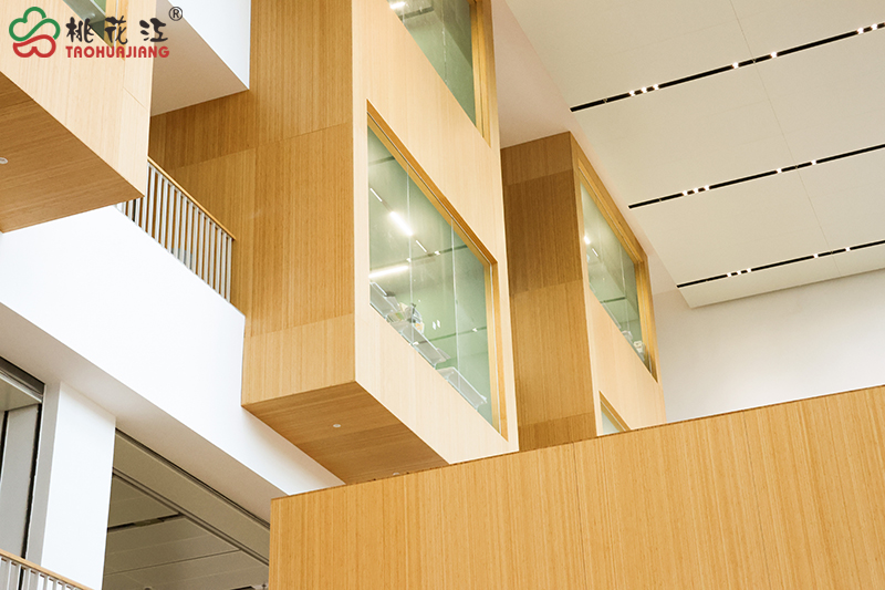 信陽學(xué)院南湖校區(qū)位于河南省信陽市南灣湖風(fēng)景區(qū)科教園區(qū),占地面積約1300畝,建筑面積約69萬平方米。項(xiàng)目中,從教學(xué)樓的裝飾,到圖書館和學(xué)生休閑區(qū)的打造,充分發(fā)揮了桃花江任意竹?的特質(zhì),將竹材的天然美學(xué)與科技工藝融入室內(nèi)空間,以地板、墻板、扶手等為載體,詮釋了“竹文化”,打造出兼具文化厚度與功能硬度的綠色空間。這種清新自然,環(huán)保舒適的生活學(xué)習(xí)環(huán)境,既充滿人文關(guān)懷,又不失創(chuàng)新精神,完美契合了校區(qū)的設(shè)計(jì)理念:“崇尚自然、追求卓越、引領(lǐng)創(chuàng)新的山水校園,創(chuàng)建生活學(xué)習(xí)一體化社區(qū),創(chuàng)造領(lǐng)先靈活的學(xué)習(xí)環(huán)境”。......